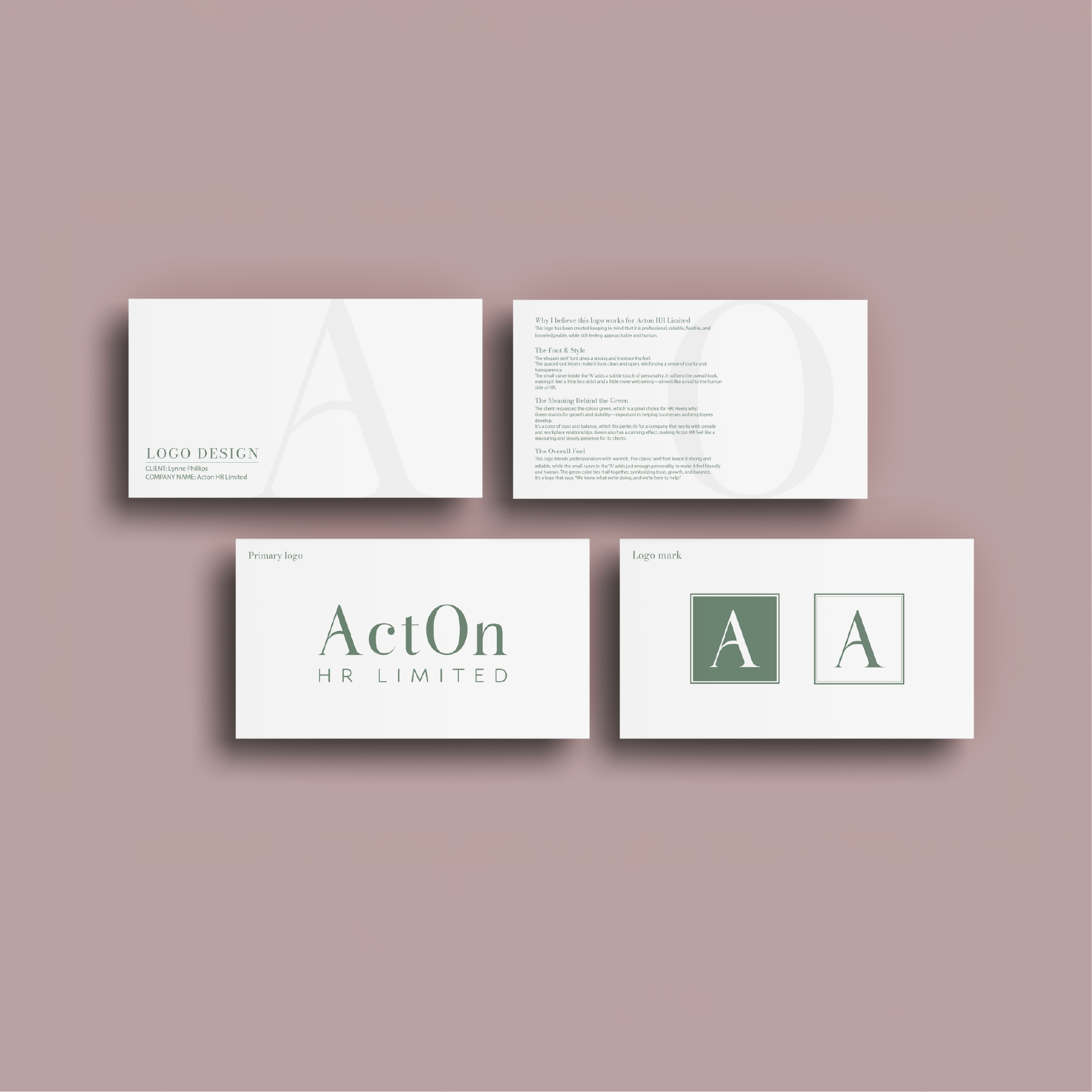 Loomisel lähtusin soovist luua Acton HR Limited’ile logo, mis oleks professionaalne, kuid samas soovisin jääda pigem lihtsa ja minimalistliku suuna peale. Valisin elegantse serif-kirjatüübi, mis annab brändile tugevuse ja kindlustunde.
